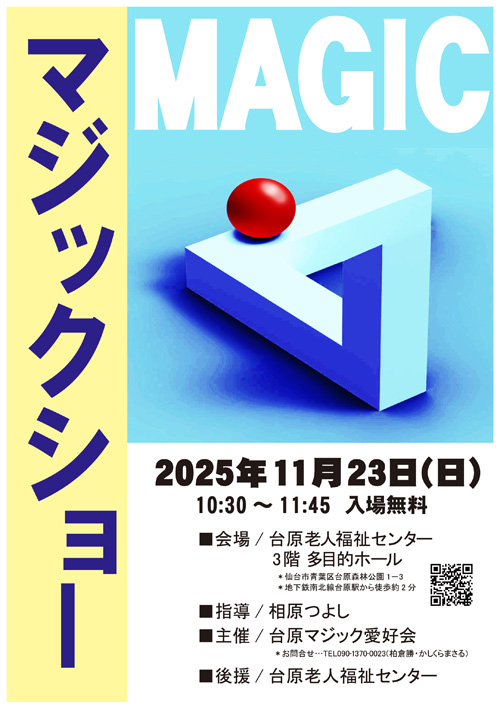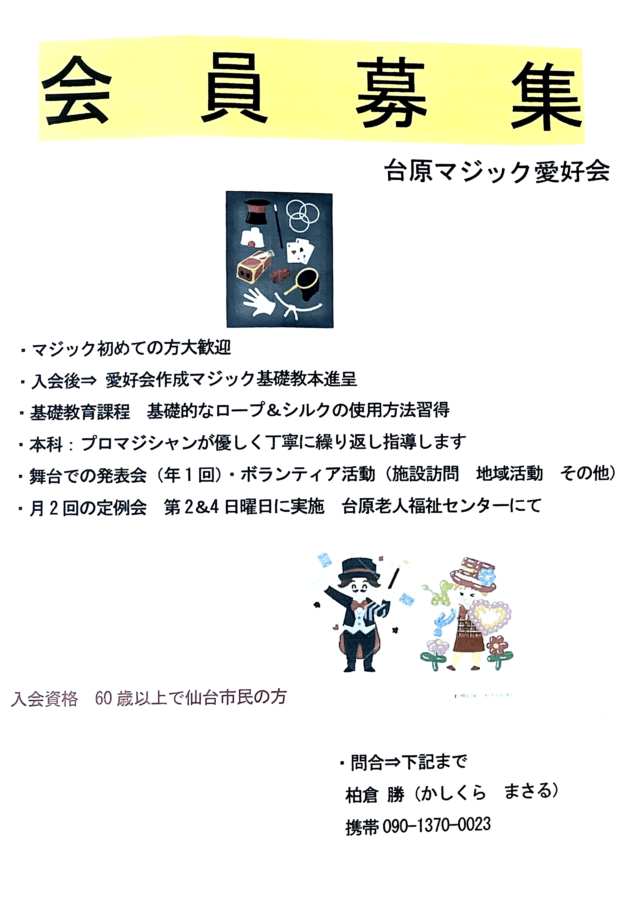 当会最大のイベント「マジックショー」 1年に1度の発表会です。 ぜひ、日ごろ鍛錬した技をご覧ください。