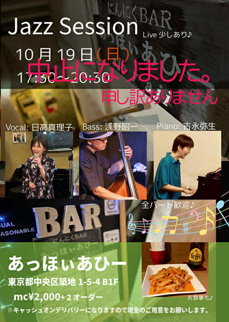 今回はボーカルの"ひだまり" さんこと日高真理子さんに入って頂きますので歌伴に入って頂ける方も大歓迎です。